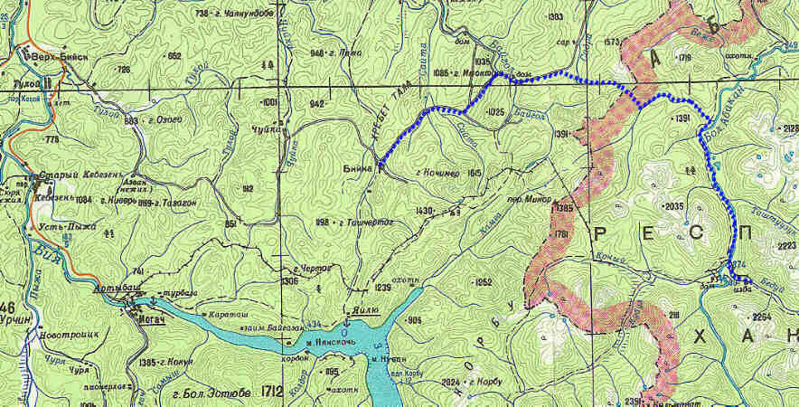 Бийка-Садринское озеро-р. Албас-р. Абакан-р. Бедуй-Горячий ключ